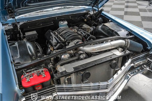 Under the hood, you'll find a robust 6.2L LS3 engine, delivering impressive performance with modern reliability. The 4-speed automatic transmission shifts smoothly, providing a seamless driving experience. Upgrades such as a cold air intake, large aluminum radiator, upgraded pulleys, and an Optima red top battery enhance engine efficiency and cooling. The drivetrain combines classic style with dependable power and handling and power steering and power front disc brakes contribute to a confident and controlled ride.