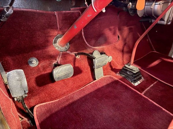Inside, the red interior continues the classic theme, creating a sharp and inviting space. The seats are [Insert Condition Description: e.g., "well-maintained," "showing some wear," or "recently reupholstered"].